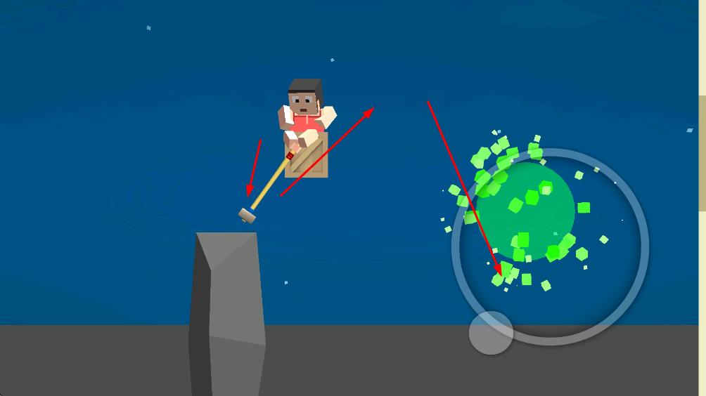 1、操控锤子攀爬山体:全程借助锤子的力量在山体上攀爬,通过挥动锤子勾住岩石或凸起物,调整身体姿态向上移动,同时避开障碍物,操作虽简单但需反复练习才能熟练掌握。