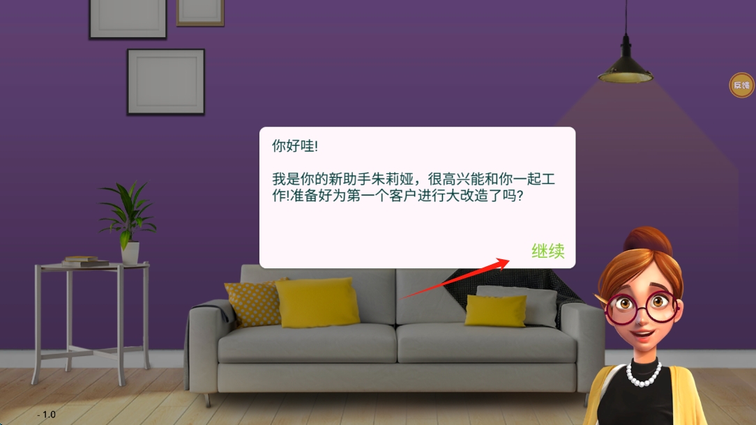2、游戏中,跟随新助手朱莉娅的引导,点击继续,了解游戏任务和剧情发展,点击继续。