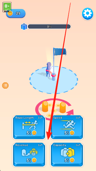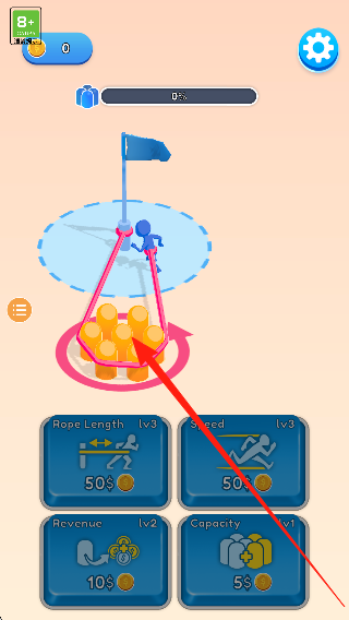 1、进入挑战场景,了解收集绳索和控制角色的基础操作,查看首个关卡的布局,准备开始体验。
