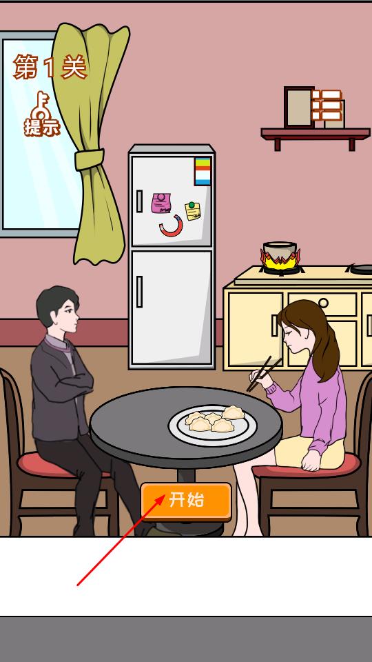 1、进入第1关点击底部开始按钮,正式开启这场情侣互动解谜挑战,触发用餐剧情,让故事线逐步展开。