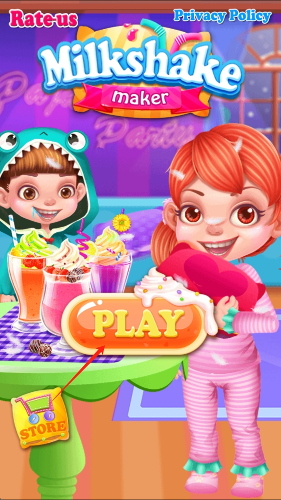 1、在Milkshake-maker启动界面,点击PLAY,开启制作奶昔的趣味之旅,点击进入游戏。