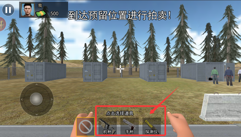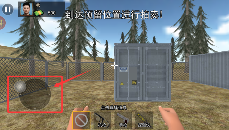 2、通过虚拟摇杆操控角色移动,前往地图上标记的宝物拍卖区域。