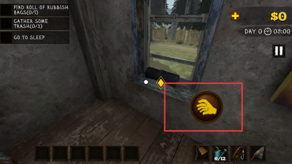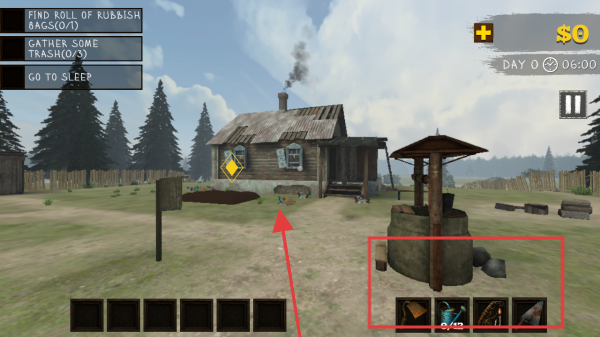 2、在游戏中,根据任务提示,如“FIND ROLL OF RUBBISH BAGS”等,在场景中寻找对应的物品,同时可利用下方道具栏中的道具辅助完成任务。