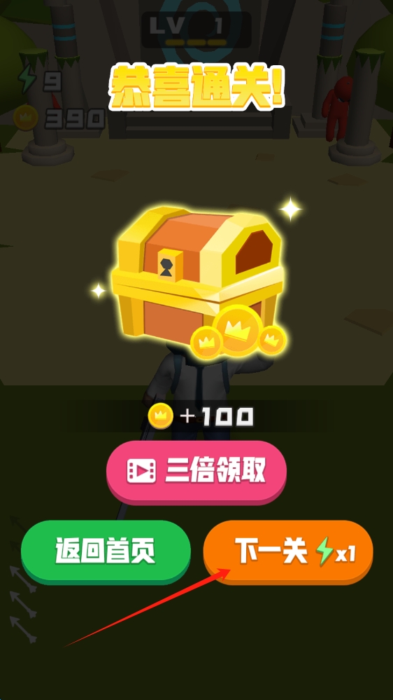 3、关卡完成后,点击下一关,继续挑战更高难度的关卡,提升射击技巧,点击进入到下一关卡。