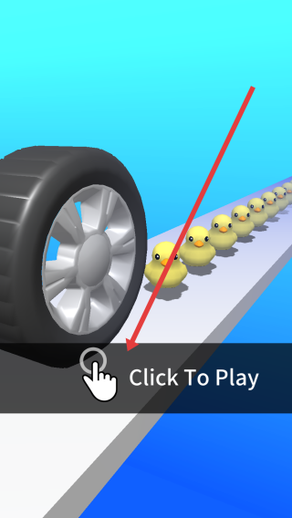 1、点击界面下方Click-To-Play区域,让轮胎开始在小鸭排列的道路上滚动,启动游戏关卡。