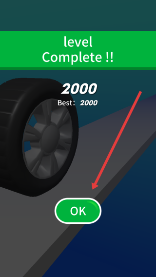 3、关卡完成后,看到level-Complete-!!提示及2000分,点击绿色OK按钮,结束本关进入下一关。