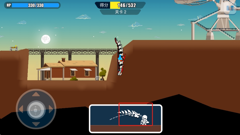2、操控摇杆让飞行物飞越地形,利用下方小地图留意路线,撞击途中物体拿分,朝着目标分数推进。