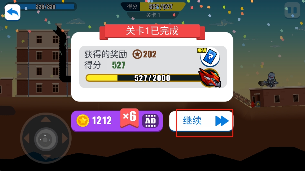 3、通关当前关卡后,界面会弹出战利品奖励清单,同时解锁新的关卡,点击下方继续按钮即可进行挑战。