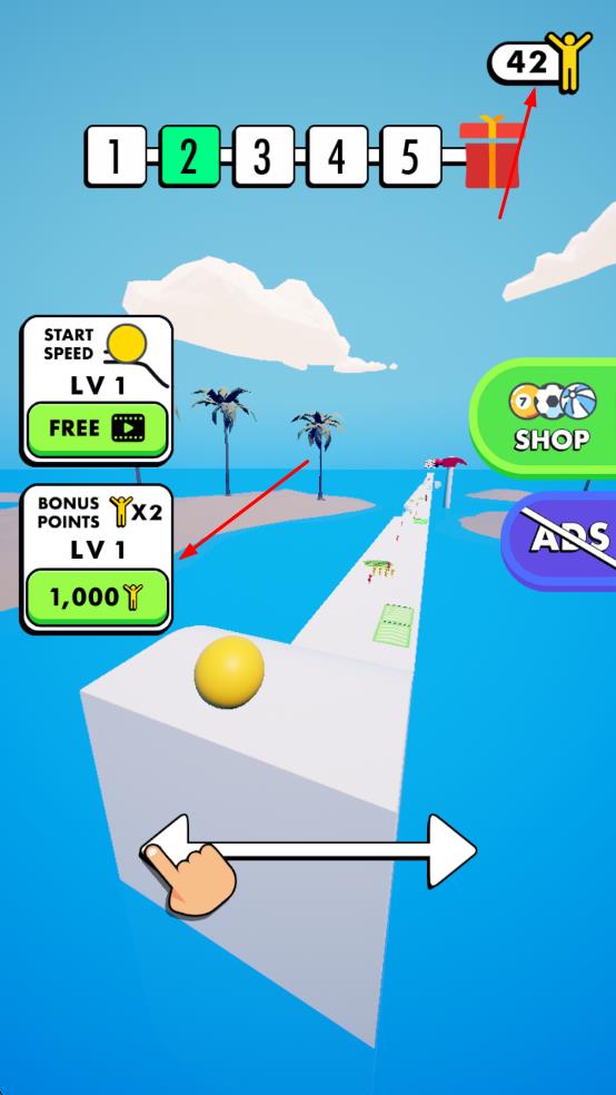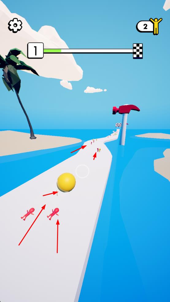 2、收集赛道上的红色小人,收集的小人数量会显示在右上角,同时注意避开障碍物,确保球体顺利前进。