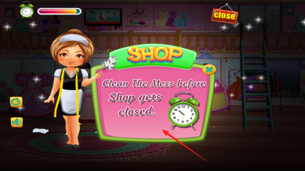 3、接收清洁任务清理店铺,在关店前打扫杂物,完成目标体验限时清洁玩法。