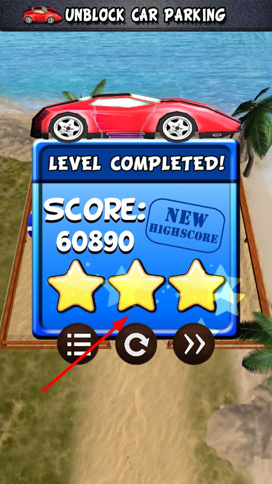 3、当红色赛车前方通道畅通后,拖动红色赛车驶出停车场,完成关卡,根据移动次数和速度获取星级评价。