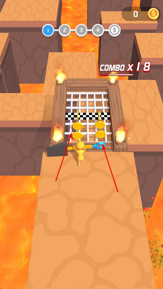 2、注意收集金币,金币会显示在关卡的终点区域,同时关注上方的连击数,连击数越高,获取的分数和奖励越多。