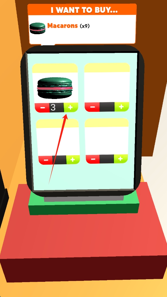 2、在点餐界面,选择马卡龙Macarons数量,根据需求调整,完成点餐,点击增加物品数量。