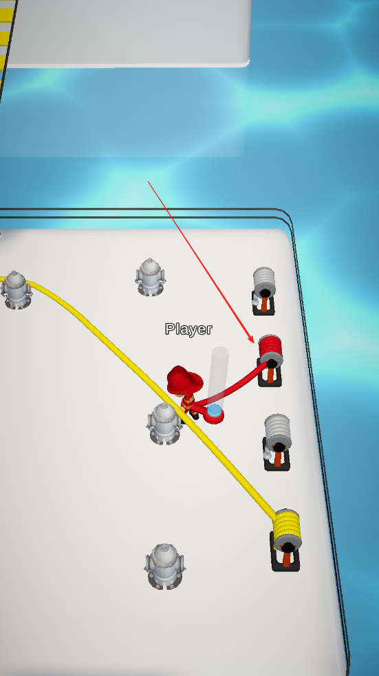 2、灭掉一层火梯后,走上第二层我们需要先将消防栓跟水管连上,连上后再继续收集水,灭火进入下一层。