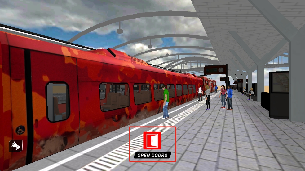 1、在车站场景,点击屏幕下方的OPEN DOORS按钮,打开列车门,待乘客上下完毕后关闭车门准备发车。