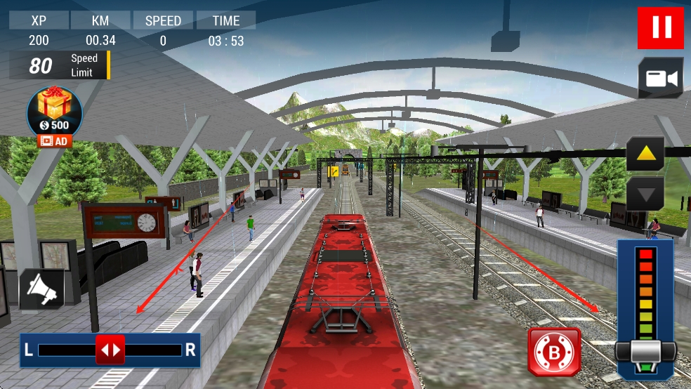 2、发车后观察车站轨道,留意乘客位置,通过左右按键调整列车方向,确保沿正确轨道行驶,避开行人。