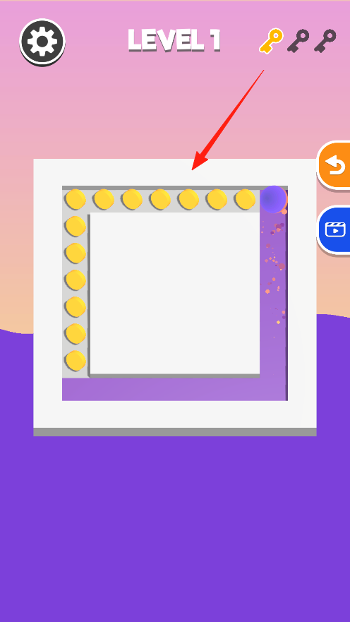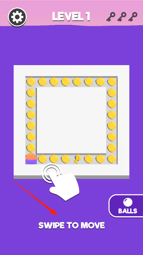 1、滑动屏幕移动小球,让小球沿轨道收集金币,获取钥匙推进关卡,体验滑动控制机制。