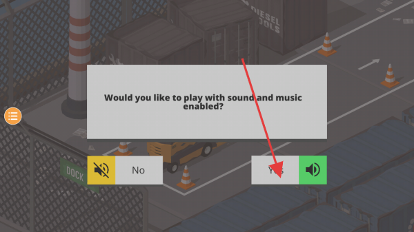 1、在游戏开始界面,选择Yes按钮,开启游戏声音和音乐,获得更好的游戏体验。