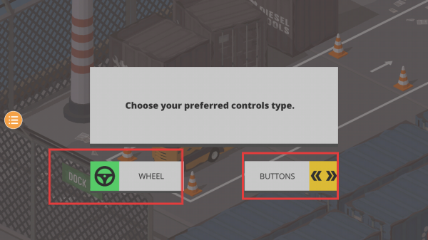 2、在控制方式选择界面,可选择WHEEL方向盘控制或BUTTONS按钮控制,根据个人喜好选择合适的操控方式。