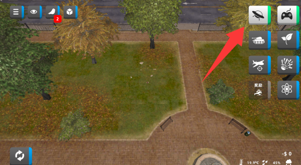 3、点击红色箭头召唤飞碟出来破坏城市。