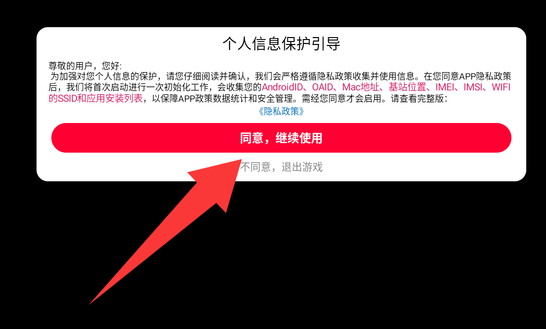 1、点击个人信息保护引导的同意,进行使用。