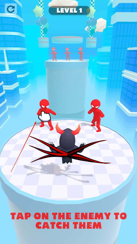 1、点击死神面前的敌人,死神会抓住敌人,左右手各抓一只,再向上滑动屏幕,攻击两个敌人,让敌人倒下。