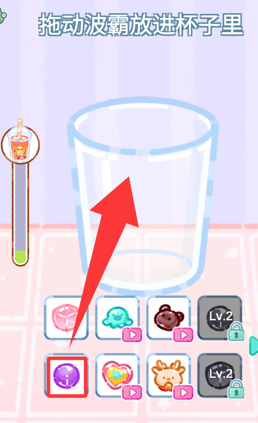 4、点击长按拖动红色框框的珍珠到杯子里。