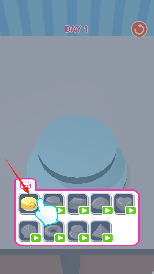 2、选择蛋糕模具进行按压,从模具栏选样式,塑造形状,改变物品外观,体验造型定制玩法。