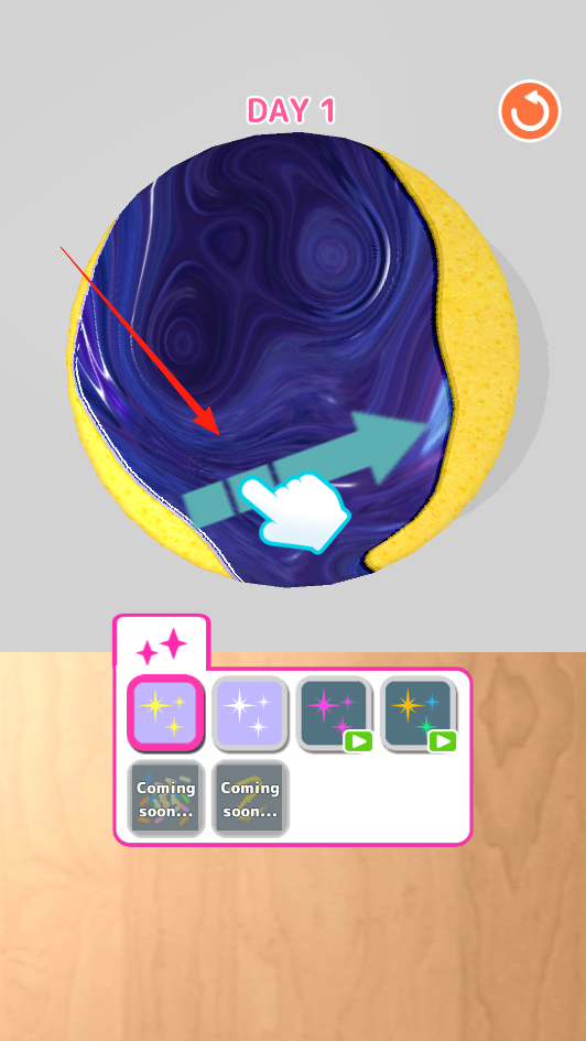 3、滑动手指涂抹颜料,控制方向为物品上色,完成装饰步骤,体验色彩绘制机制。