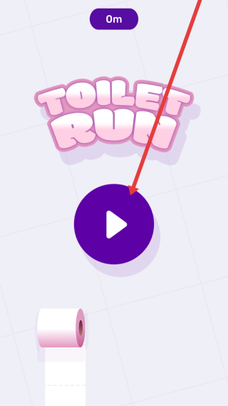 1、进入到游戏主页面中,点击紫色播放按钮,启动TOILET-RUN游戏,操控卫生纸卷开始跑酷挑战。