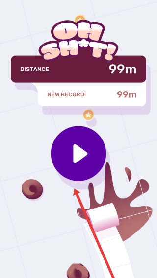 3、在挑战失败或想刷新记录时,可以通过重新点击紫色播放按钮,重新开始游戏,冲击更远距离。