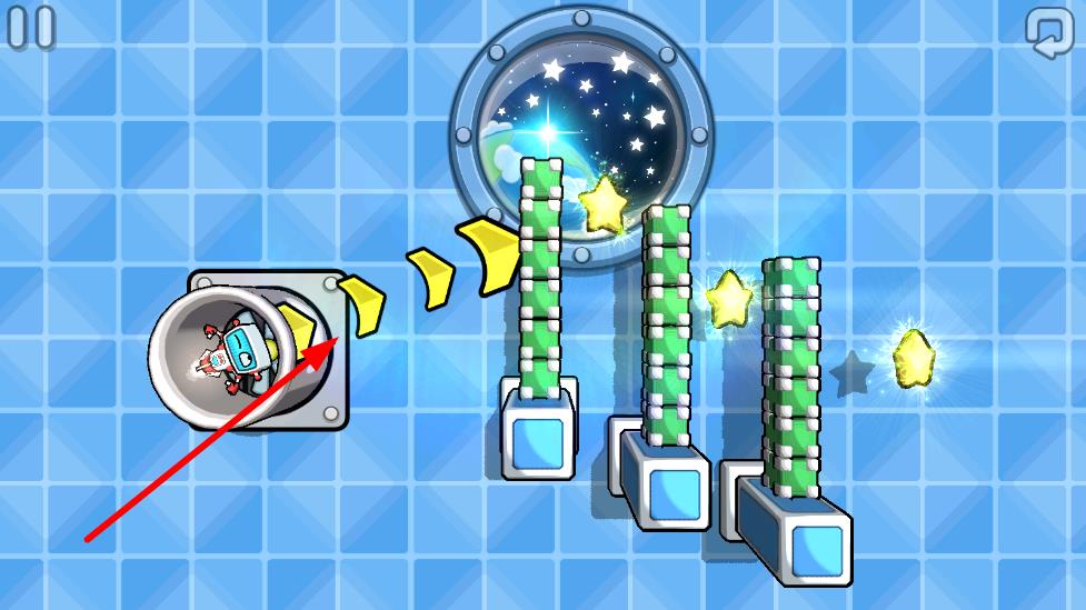 3、凭借一次发射机会,让机器人收集足够星星并抵达关卡大门,利用真实物理机制规划路线,完成挑战解锁新关卡。