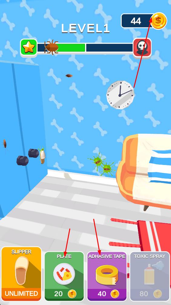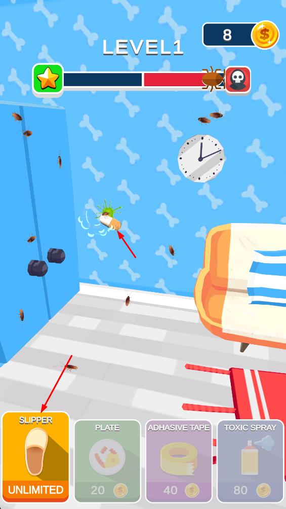 1、蟑螂狡猾增加挑战:蟑螂并不脆弱且十分狡猾,难以消除,它们的移动与躲藏方式增加了消灭难度,让玩家在击杀过程中需要更专注,提升了游戏的挑战性与趣味性。