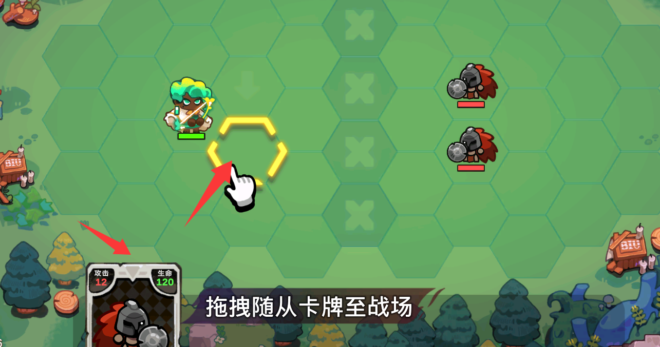 1、通过拖拽操作部署随从,长按查看详细属性。战斗中可随时调整站位,关键单位还能设置优先保护指令。