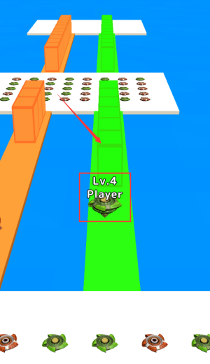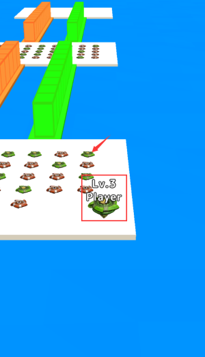 2、控制红框Lv3角色,沿绿色通道向上移动。