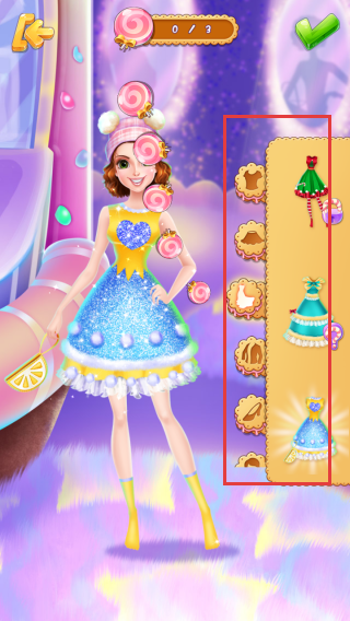 3、进入游戏后,你可以为角色选择不同款式的服装,如右侧展示的各种裙子等,为角色搭配出漂亮的造型,完成服装搭配任务。