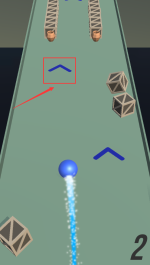 3、触碰红框蓝色箭头,控制蓝球向上躲避障碍。