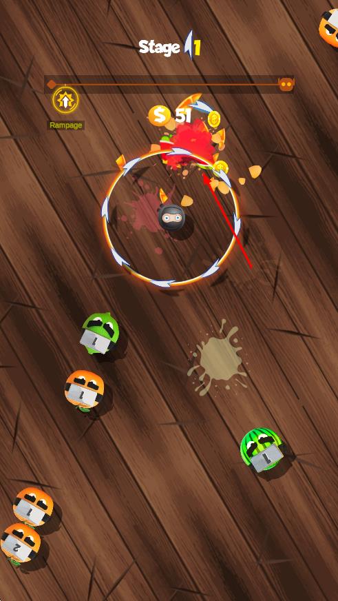 1、进入游戏后,在初始关卡用手指在屏幕滑动,切割抛出的水果,避开炸弹,完成基础的切割任务。