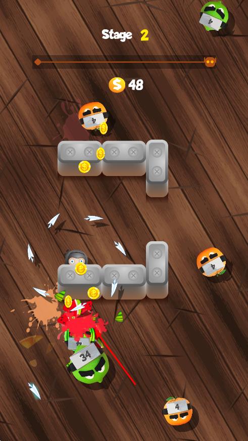2、随着关卡推进,水果出现速度加快且混合特殊道具,需快速分辨并优先切割带增益效果的水果,提升得分。