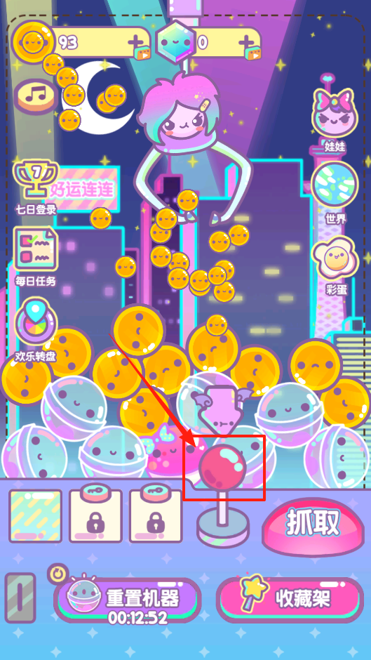 1、自主选择抓取盲盒:可根据喜好选择想要抓取的类型,使用金币操作机器进行抓取,整个过程由自己掌控,能按照个人意愿决定抓取目标,享受选择带来的乐趣。