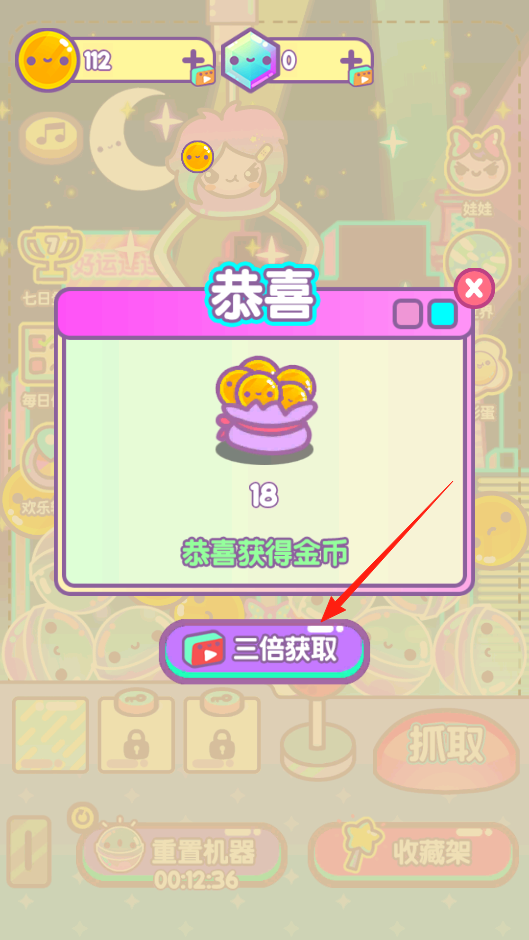 3、选择三倍获取观看广告,获得金币后,通过广告翻倍奖励,增加资源获取量,体验奖励翻倍玩法。