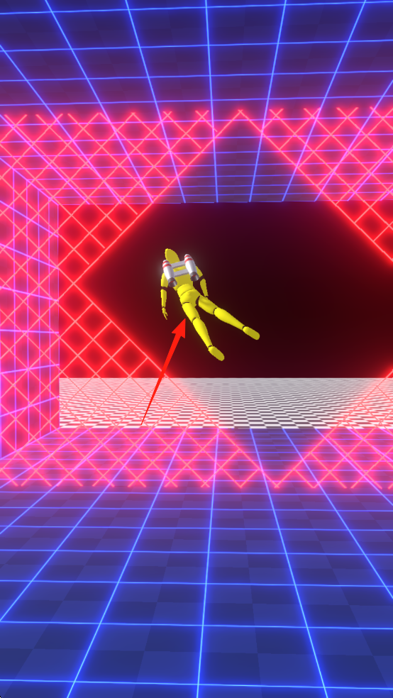 2、沿红箭头指引方向,控制飞行路径,避开隐形墙,保持推进力稳定看顶部能量条。