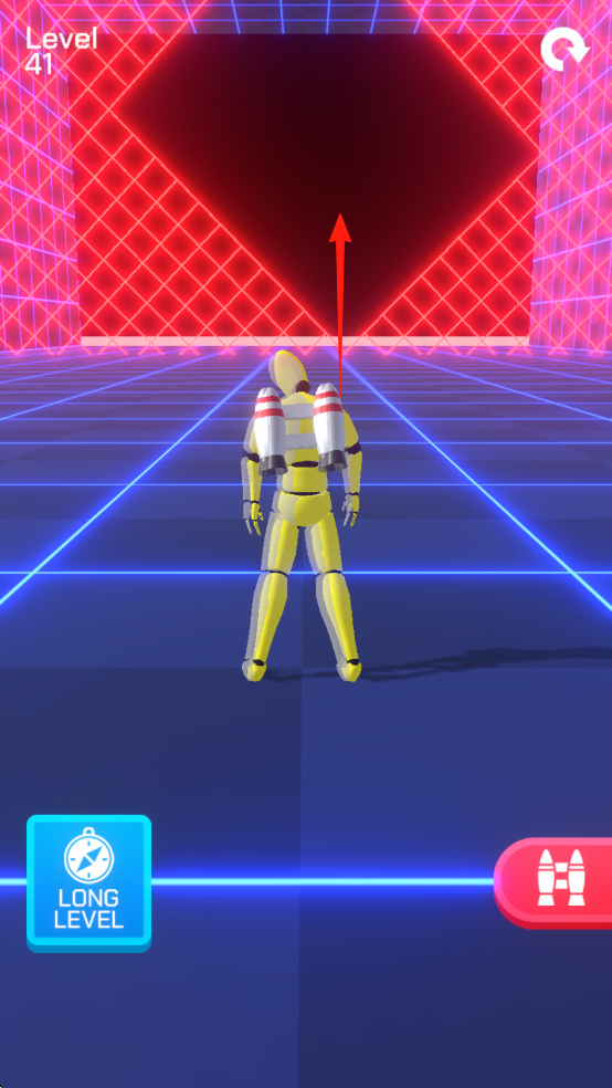 1、进入Level41,点击右侧火箭按钮,激活喷气背包,角色腾空,利用推进力向前飞行。