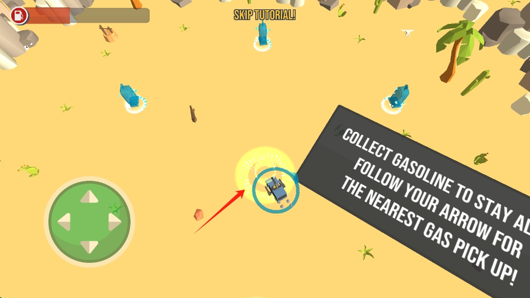 3、时刻留意汽油量,跟随箭头指示,及时收集汽油,确保赛车持续行驶,完成游戏任务,靠近拾取。