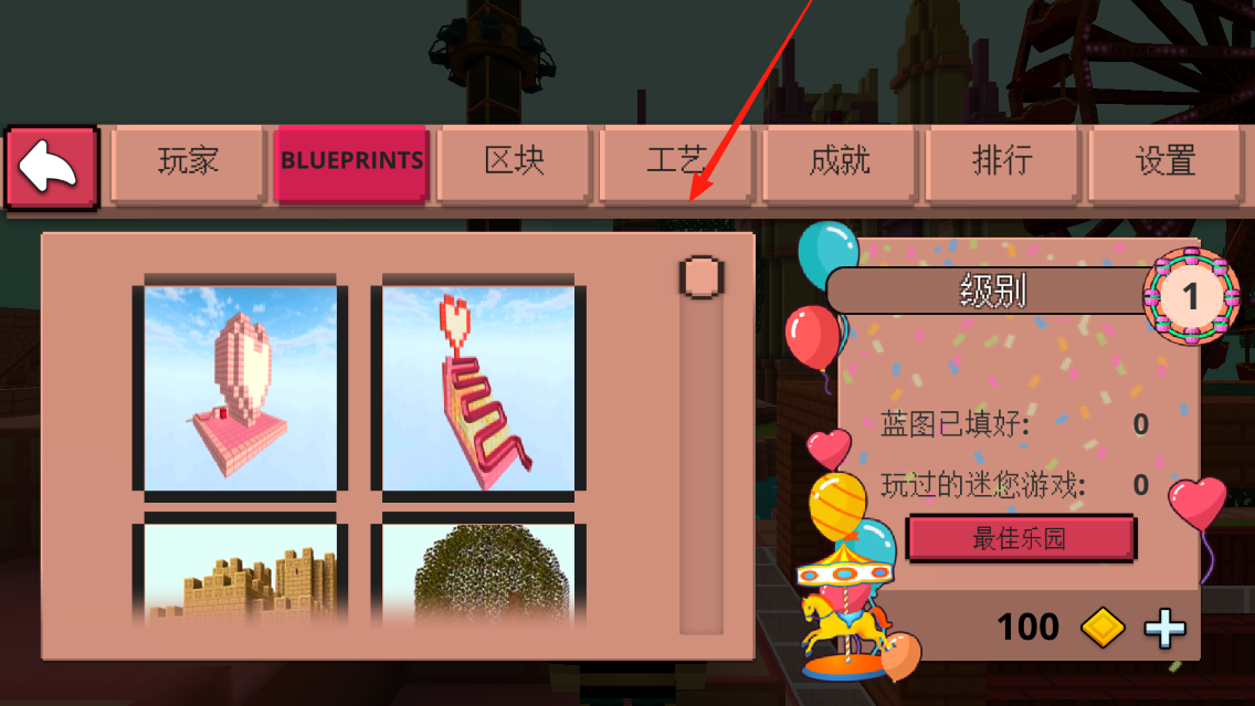 2、进入工艺界面,查看蓝图,选择不同建筑蓝图,了解建造样式,为乐园搭建做准备,体验规划机制。