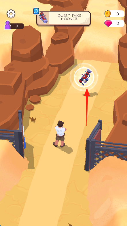 1、进入游戏到主界面,控制角色移动,前往红箭头指向处,获取QUESTTAKEHOOVER任务道具。