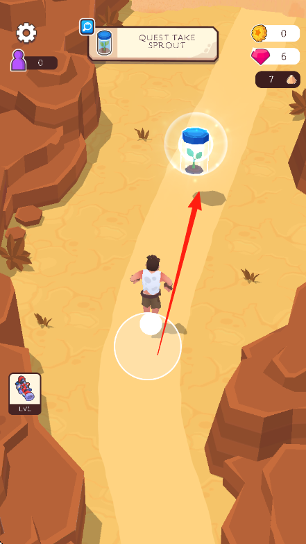 2、在游戏过程里会出现不同的道具,操控角色走向红箭头所指位置,拾取QUESTTAKESPROUT任务物品。