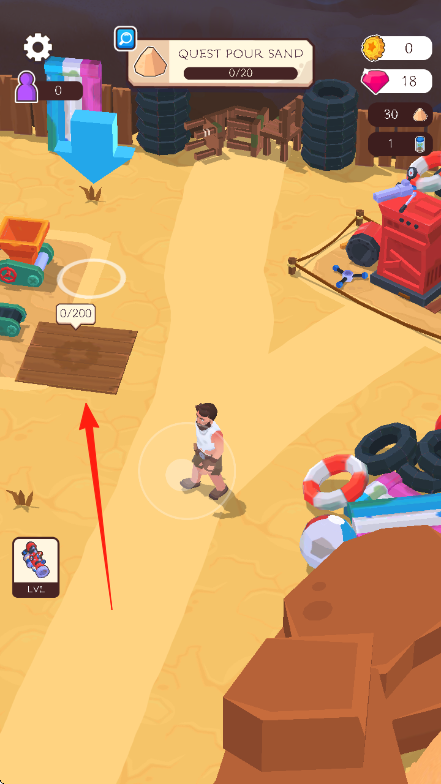3、让角色按红箭头方向移动,到达指定区域,进行QUESPOURSAND任务相关操作。