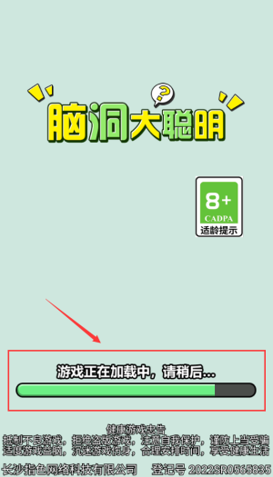 1、等待红框进度条加载完成,准备开始脑洞大聪明游戏。