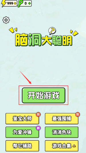2、点击红框开始游戏按钮,进入脑洞大聪明主界面。